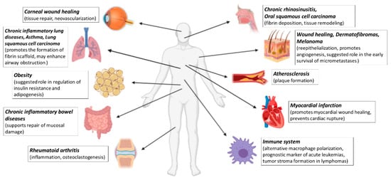 In this review, we aim to summarize the available results and our recent understanding on the role of FXIII-A in various diseases (Figure 1).