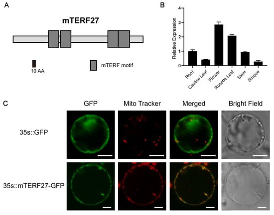 2.1. mTERF27 Is a Mitochondria-Localized mTERF Protein