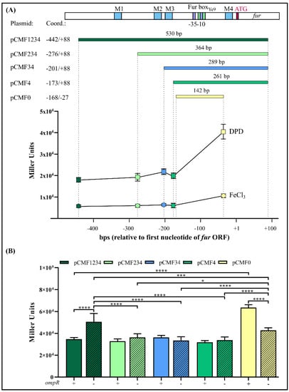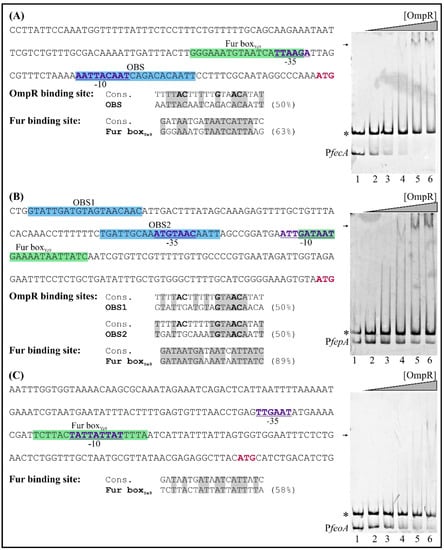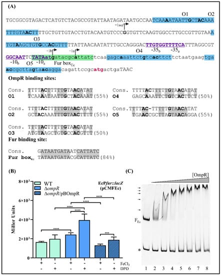 2.7. E. coli Fur Expression Is Negatively Regulated by OmpR