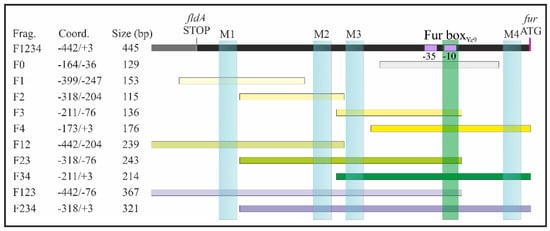 - Hunt, M.D.; Pettis, G.S.; McIntosh, M.A. Promoter and operator determinants for fur-mediated iron regulation in the bidirectional fepA-fes control region of the Escherichia coli enterobactin gene system. J. Bacteriol. 1994, 176, 3944–3955. [Google Scholar] [CrossRef] [PubMed]
