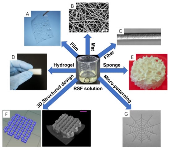 - Nguyen, T.P.; Nguyen, Q.V.; Nguyen, V.H.; Le, T.H.; Huynh, V.Q.N.; Vo, D.N.; Trinh, Q.T.; Kim, S.Y.; Le, Q.V. Silk Fibroin-Based Biomaterials for Biomedical Applications: A Review. Polymers 2019, 11, 1933. [Google Scholar] [CrossRef]