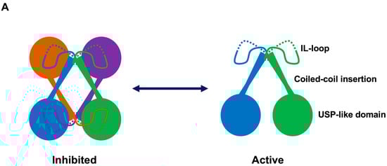 4.3. USP25, an Auto-Inhibitory Homotetramer