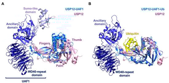 - Dharadhar, S.; Clerici, M.; van Dijk, W.J.; Fish, A.; Sixma, T.K. A conserved two-step binding for the UAF1 regulator to the USP12 deubiquitinating enzyme. J. Struct. Biol. 2016, 196, 437–447. [Google Scholar] [CrossRef]
