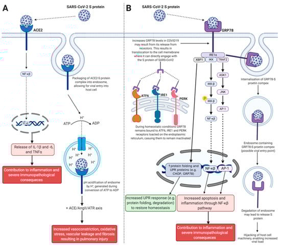 Burgeoning evidence is emerging from in vitro and in silico models, demonstrating interactions between S protein and immune receptors, including Neuropilin-1 (NRP1), C-lectin type receptors (CLR) (mannose receptor (MR); dendritic cell-specific intracellular adhesion molecule-3-grabbing non-integrin (DC-SIGN); homologue dendritic cell-specific intercellular adhesion molecule-3-grabbing nonintegrin related (L-SIGN); and macrophage galactose-type lectin (MGL)) [,] and toll-like receptors (TLRs) (TLR1; TLR4; and TLR6) [], and the non-immune receptor glucose regulated protein 78 (GRP78) []. Furthermore, Ezrin [], and dipeptidyl peptidase-4 (DPP4) [] have been postulated to be targets against SARS-CoV-2, but have yet to be confirmed in in vitro and in vivo models. Thus, these receptors and proteins may represent alternative routes for viral infection by facilitating receptor-dependent internalization of the S protein (Figure 1). We postulate that recognition of mannosylated N-glycan and O-glycan moieties present on the S protein [,] by GRP78 [] and specific CLRs [,] and TLRs [,,] may facilitate association and internalization of S protein, and may account for accentuate severe immunopathological inflammation (resulting in cytokine release syndrome). Additional CLRs (blood dendritic cell antigen-2 (BDCA-2); C-type lectin-like receptor 2 (CLEC2); dendritic cell-associated C-type lectin-1 (Dectin-1) and -2 (Dectin-2); dendritic cell immunoreceptor (DCIR); dendritic cell natural killer lectin group receptor-1 (DNGR1); lectin-like oxidized low-density lipoprotein receptor-1 (LOX-1); and liver and lymph node sinusoidal endothelial cell C-type lectin (LSECtin)) and TLRs (TLR3; TLR5; TLR7; and TLR8), which do not directly interact with the S protein, may have roles in other aspects of COVID-19 infection. This article provides an extensive review of current literature pertaining to the CLRs, TLRs, and other proteins that may be involved in COVID-19 and should therefore be considered as potential therapeutic targets.