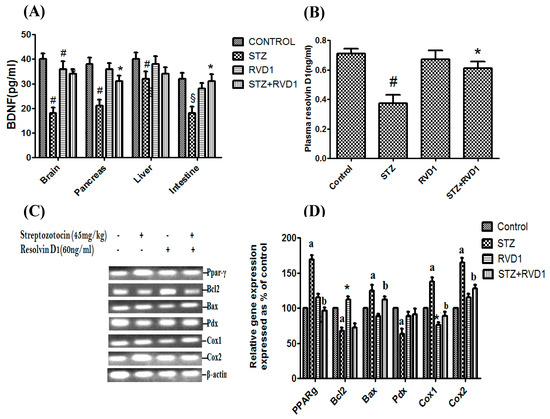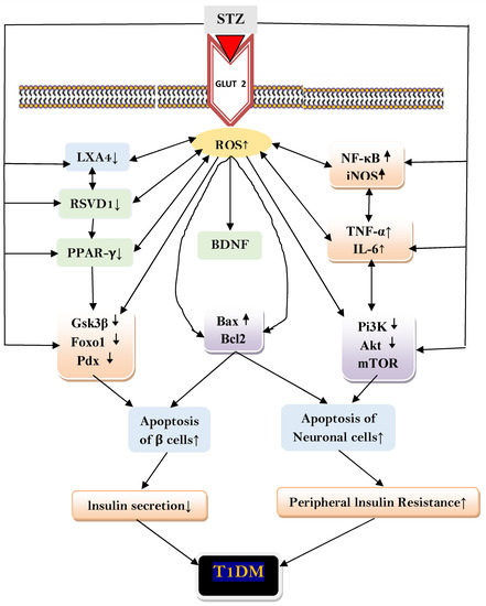 Bathina, S.; Das, U.N. Resolvin D1 Decreases Severity of Streptozotocin-Induced Type 1 Diabetes Mellitus by Enhancing BDNF Levels, Reducing Oxidative Stress, and Suppressing Inflammation. Int. J. Mol. Sci. 2021, 22, 1516. https://doi.org/10.3390/ijms22041516