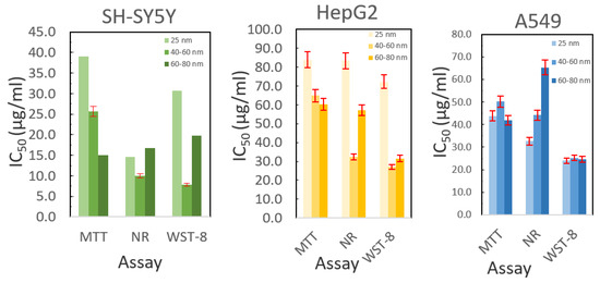 | Cell Line | 25 nm CuNPs | 40–60 nm CuNPs | 60–80 nm CuNPs |