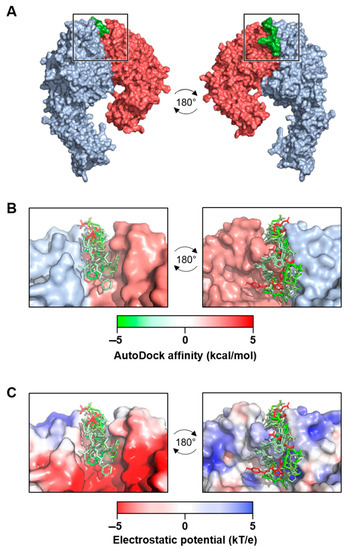 - Saladin, A.; Rey, J.; Thevenet, P.; Zacharias, M.; Moroy, G.; Tuffery, P. PEP-SiteFinder: A tool for the blind identification of peptide binding sites on protein surfaces. Nucleic Acids Res. 2014, 42, W221–W226. [Google Scholar] [CrossRef]