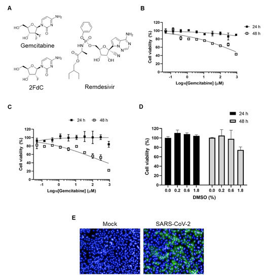 Jang Y, Shin JS, Lee MK, Jung E, An T, Kim U-I, Kim K, Kim M. Comparison of Antiviral Activity of Gemcitabine with 2′-Fluoro-2′-Deoxycytidine and Combination Therapy with Remdesivir against SARS-CoV-2. International Journal of Molecular Sciences. 2021; 22(4):1581. https://doi.org/10.3390/ijms22041581