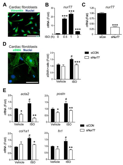 2.2. Nur77 Knockdown in CFs Represses MyoFB Marker Expression
