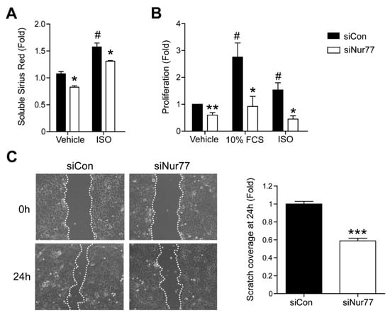 2.3. Nur77 Knockdown in CFs Represses MyoFB Functional Characteristics