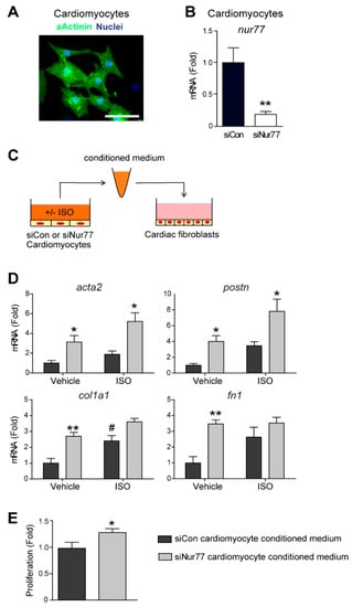 2.4. Paracrine Factors from Nur77-Silenced Cardiomyocytes Promote MyoFB Differentiation