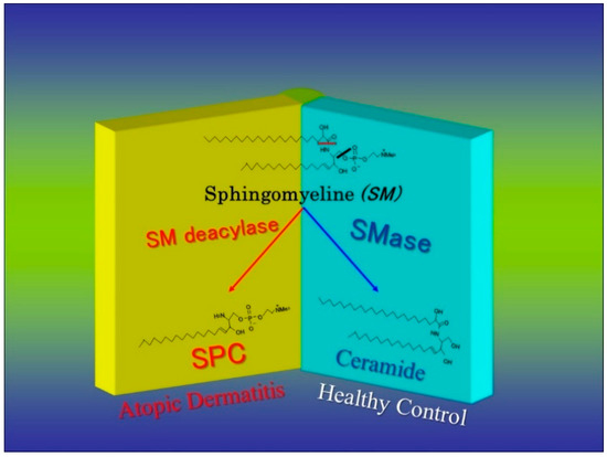 - Kusuda, S.; Cui, C.Y.; Takahashi, M.; Tezuka, T. Localization of sphingomyelinase in lesional skin of atopic dermatitis patients. J. Investig. Derm. 1998, 111, 733–738. [Google Scholar] [CrossRef][Green Version]