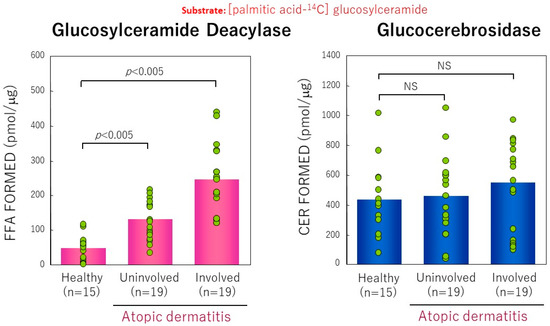 GCer deacylase activity measured using palmitoyl 14C-GCer as a substrate in the SC from lesional AD skin [17].