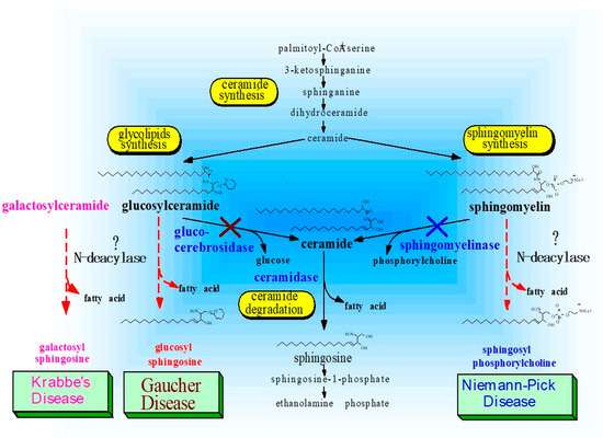 Altered sphingolipid metabolism discovered in Niemann–Pick, Gaucher and Krabbe’s Diseases [63,64,65,66,67].