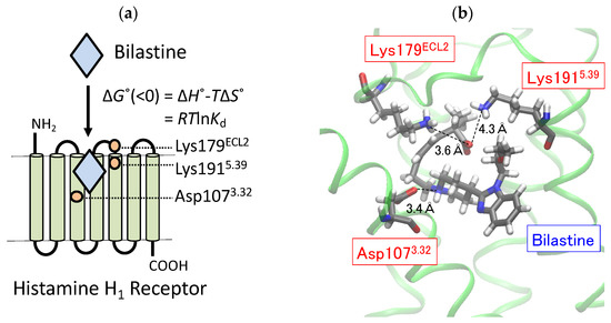 - Kobayashi, C.; Tanaka, A.; Yasuda, T.; Hishinuma, S. Roles of Lys191 and Lys179 in regulating thermodynamic binding forces of ligands to determine their binding affinity for human histamine H1 receptors. Biochem. Pharmacol. 2020, 180, 114185. [Google Scholar] [CrossRef] [PubMed]