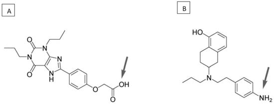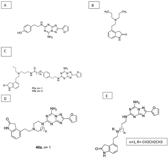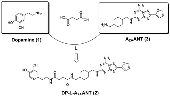 - Dalpiaz, A.; Cacciari, B.; Vicentini, C.B.; Bortolotti, F.; Spalluto, G.; Federico, S.; Pavan, B.; Vincenzi, F.; Borea, P.A.; Varani, K. A Novel Conjugated Agent between Dopamine and an A2A Adenosine Receptor Antagonist as a Potential Anti-Parkinson Multitarget Approach. Mol. Pharm. 2012, 9, 591–604. [Google Scholar] [CrossRef] [PubMed]
