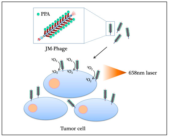 - Gandra, N.; Abbineni, G.; Qu, X.; Huai, Y.; Wang, L.; Mao, C. Bacteriophage bionanowire as a carrier for both cancer-targeting peptides and photosensitizers and its use in selective cancer cell killing by photodynamic therapy. Small 2013, 9, 215–221. [Google Scholar] [CrossRef] [PubMed]