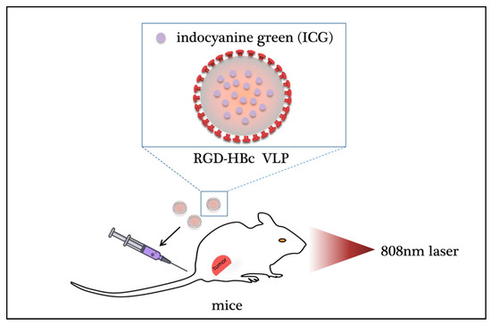 - Shan, W.; Chen, R.; Zhang, Q.; Zhao, J.; Chen, B.; Zhou, X.; Ye, S.; Bi, S.; Nie, L.; Ren, L. Improved Stable Indocyanine Green (ICG)-Mediated Cancer Optotheranostics with Naturalized Hepatitis B Core Particles. Adv. Mater. 2018, 30, e1707567. [Google Scholar] [CrossRef] [PubMed]