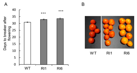 Chicago/Turabian StyleShibuya, Tomoki, Manabu Nishiyama, Kazuhisa Kato, and Yoshinori Kanayama. 2021. "Characterization of the FLAVIN-BINDING, KELCH REPEAT, F-BOX 1 Homolog SlFKF1 in Tomato as a Model for Plants with Fleshy Fruit" International Journal of Molecular Sciences 22, no. 4: 1735. https://doi.org/10.3390/ijms22041735