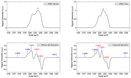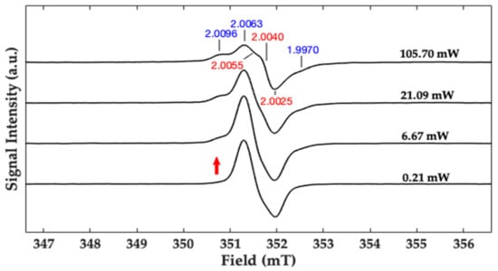 4.3. Multifrequency Continuous Wave (CW) and Pulse EPR Analysis
