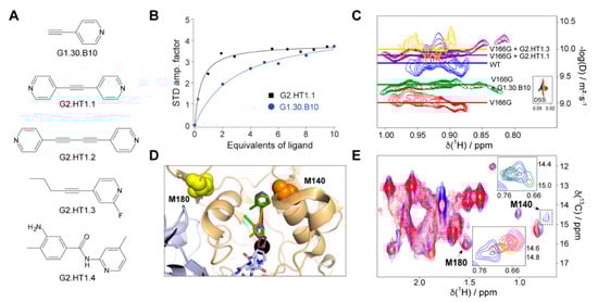 where αSTD is the maximum amplification factor and [L] is the ligand concentration. The protein concentration was set to 30 µM while the ligand concentration varied between 0 and 900 µM. All the experiments used 3 s saturation time at a position of −0.5 ppm.