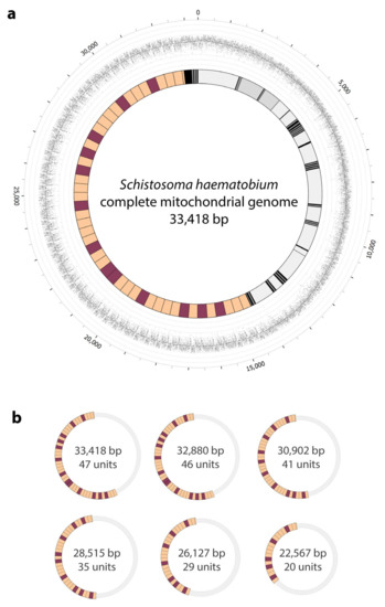 The following are available online at https://www.mdpi.com/1422-0067/22/4/1811/s1, Figure S1: distribution of repeat unit frequencies in Nanopore long-reads, Figure S2: nucleotide coverage of Nanopore long-reads across mitochondrial (mt) genomes with 46, 41, 35, 29 and 20 repeat units, Figure S3: hierarchical cluster analysis of the patterns of repeat units in the mitochondrial (mt) genomes of Schistosoma haematobium.