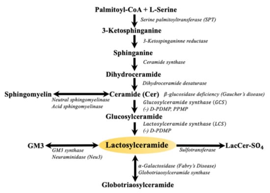 - Chatterjee, S.; Pandey, A. The Yin and Yang of lactosylceramide metabolism: Implications in cell function. Biochim. Biophys. Acta 2008, 1780, 370–382. [Google Scholar] [CrossRef] [PubMed]