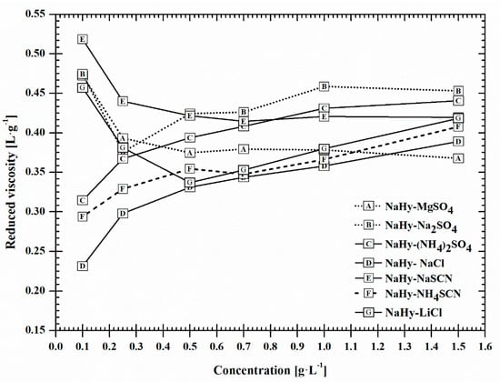 | ηred NaHy at 0.1 g L−1 (L·g−1) | NaCl | NH4SCN | (NH4)2SO4 | LiCl | Na2SO4 | MgSO4 | NaSCN |