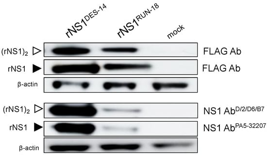 2.2.1. Expression of DES-14 rNS1 and RUN-18 rNS1 Proteins