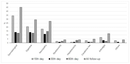 - Aldasoro, E.; Posada, E.; Requena-Méndez, A.; Calvo-Cano, A.; Serret, N.; Casellas, A.; Sanz, S.; Soy, D.; Pinazo, M.J.; Gascon, J. What to expect and when: Benznidazole toxicity in chronic Chagas’ disease treatment. J. Antimicrob. Chemother. 2018, 73, 1060–1067. [Google Scholar] [CrossRef]