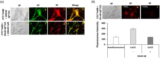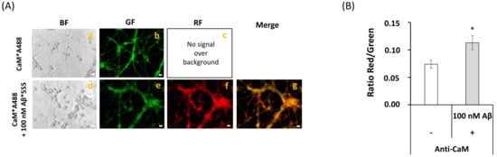 2.2. Fluorescence Resonance Energy Transfer (FRET) Imaging Shows an Extensive Co-Localization between CaM and Aβ(1–42) HiLyteTM-Fluor555 in Mature CGN