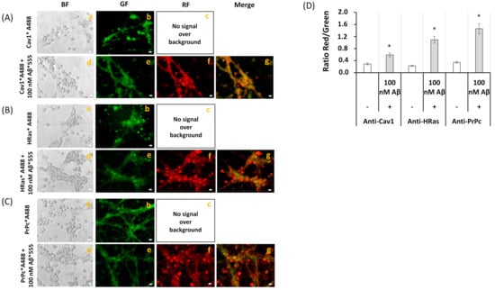 - Lai, A.Y.; McLaurin, J. Mechanisms of Amyloid-Beta Peptide Uptake by Neurons: The Role of Lipid Rafts and Lipid Raft-Associated Proteins. Int. J. Alzheimer’s Dis. 2011, 2011, 1–11. [Google Scholar] [CrossRef] [PubMed]