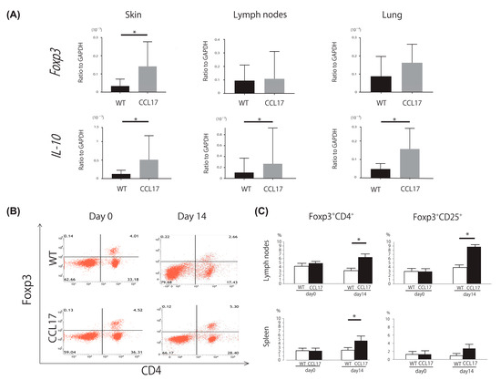 2.3. Increased Tregs in CCL17 TG Mice