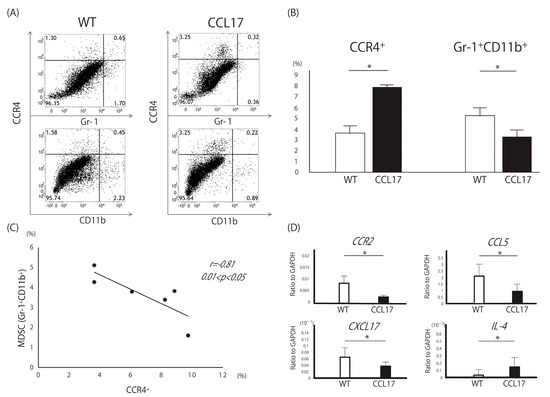 2.4. Decreased Myeloid-Derived Suppressor Cells in CCL17 TG Mice
