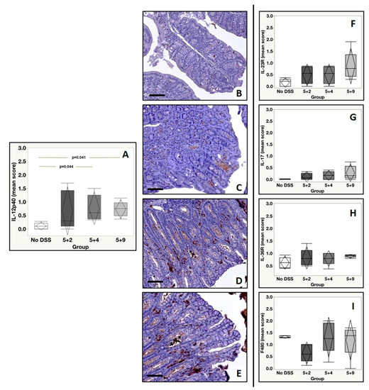 Chicago/Turabian StyleBonfiglio, Rita, Filippo Galli, Michela Varani, Manuel Scimeca, Filippo Borri, Sara Fazi, Rosella Cicconi, Maurizio Mattei, Giuseppe Campagna, Tanja Schönberger, and et al. 2021. "Extensive Histopathological Characterization of Inflamed Bowel in the Dextran Sulfate Sodium Mouse Model with Emphasis on Clinically Relevant Biomarkers and Targets for Drug Development" International Journal of Molecular Sciences 22, no. 4: 2028. https://doi.org/10.3390/ijms22042028