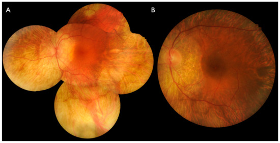 - Hayasaka, S.; Shoji, K.; Kanno, C.-I.; Oura, F.; Mizuno, K. Differential diagnosis of diffuse choroidal atrophies. Retina 1985, 5, 30–37. [Google Scholar] [CrossRef]
