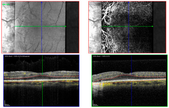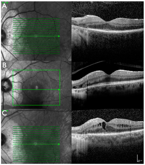 - Ramtohul, P.; Gascon, P.; Matonti, F. Choroidal neovascularization in late-onset retinal macular degeneration. Ophthalmol. Retin. 2019, 3, 153. [Google Scholar] [CrossRef]