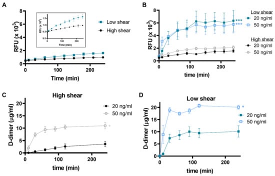 2.4. Shear Rate Influences the Fibrinolytic Protein Content of Thrombi and Impedes Fibrinolysis at High Shear