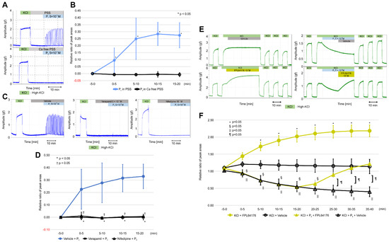 2.4. Calcium-Free PSS and VDCC Inhibitors Alter the Stimulatory Effect of Progesterone in the Resting Myometrium, Whereas FPL64176 Alters the Inhibitory Effect of Progesterone on High-KCl-Induced Myometrial Contractions