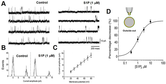 2.1. S1P Decrease the Single-Channel Currents of BKCa in Cell-Free Mode