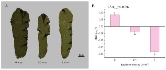 2.1. Effects of UV-B Radiation on the Morphology and Relative Growth Rate of P. haitanensis
