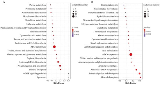 2.4. Metabolic Pathway Analysis of Differential Metabolites of P. haitanensis under Different UV-B Radiation Intensities
