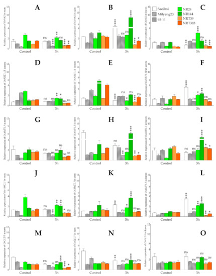 - Yan, M.; Fan, X.; Feng, H.; Miller, A.J.; Shen, Q.; Xu, G. Rice OsNAR2.1 interacts with OsNRT2.1, OsNRT2.2 and OsNRT2.3a nitrate transporters to provide uptake over high and low concentration ranges. Plant Cell Environ. 2011, 34, 1360–1372. [Google Scholar] [CrossRef] [PubMed]