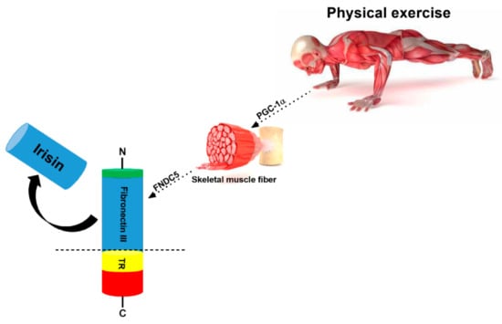 - Schumacher, M.A.; Chinnam, N.; Ohashi, T.; Shah, R.S.; Erickson, H.P. The structure of Irisin reveals a novel intersubunit β-sheet fibronectin type III (FNIII) dimer: Implications for receptor activation. J. Biol. Chem. 2013, 288, 33738–33744. [Google Scholar] [CrossRef] [PubMed]