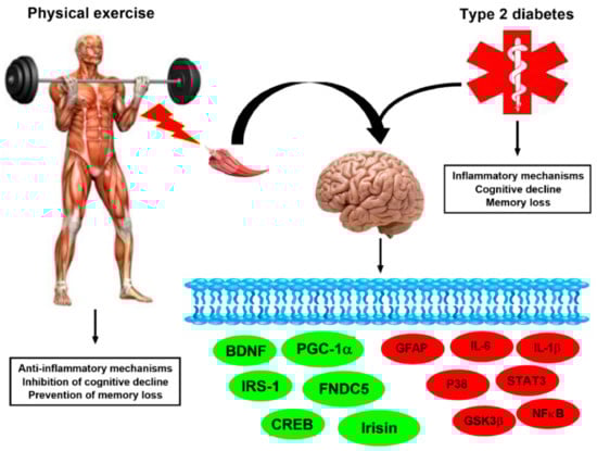 - Yi, S.S. Effects of exercise on brain functions in diabetic animal models. World J. Diabetes 2015, 6, 583–597. [Google Scholar] [CrossRef] [PubMed]
