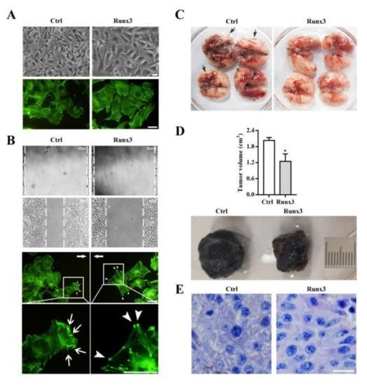APA StyleWang, N., Zhang, H., Cui, X., Ma, C., Wang, L., & Liu, W. (2021). Runx3 Induces a Cell Shape Change and Suppresses Migration and Metastasis of Melanoma Cells by Altering a Transcriptional Profile. International Journal of Molecular Sciences, 22(4), 2219. https://doi.org/10.3390/ijms22042219