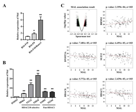 3.4. Mal Gene Expression Is Correlated with Metastatic Potential among Cellular Models and Is Subject to Epigenetic Regulation