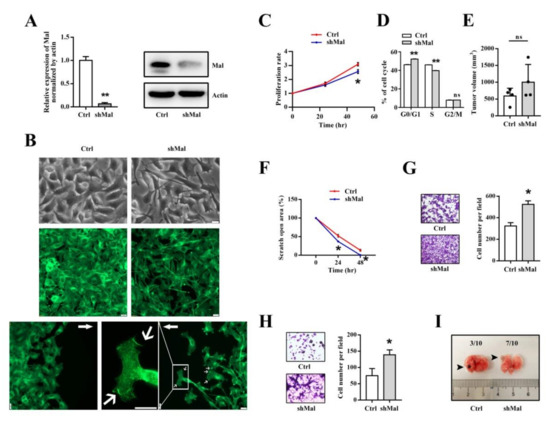 3.5. Mal Is Necessary for Suppressing the Migratory and Invasive Traits of Metastasis in Melanoma Cells