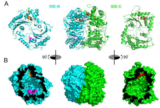 - Shen, Y.; Joachimiak, A.; Rosner, M.R.; Tang, W.J. Structures of human insulin-degrading enzyme reveal a new substrate recognition mechanism. Nature 2006, 443, 870–874. [Google Scholar] [CrossRef]