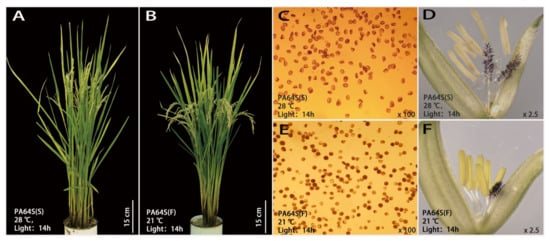 - Sun, Z.X. Identification of the Temperature Sensitive Male-sterile Rice. Chin. J. Rice Sci. 1989, 2, 49–55. [Google Scholar] [CrossRef]